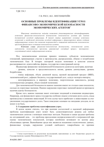 Статья: ОСНОВНЫЕ ПРОБЛЕМЫ ИДЕНТИФИКАЦИИ УГРОЗ ФИНАНСОВО-ЭКОНОМИЧЕСКОЙ БЕЗОПАСНОСТИЭКОНОМИЧЕСКИХ АГЕНТОВ (2015)