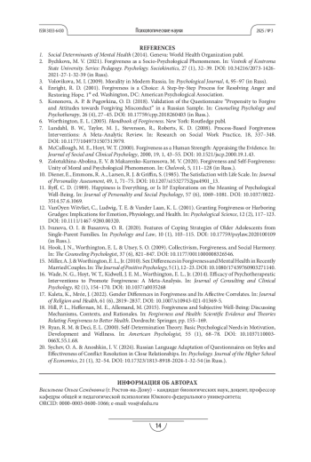 14. Hook J. N., Worthington E. L., Utsey S. O. Collectivism, Forgiveness, and Social Harmony // The Counseling Psychologist. 2009. Vol. 37. № 6. P. 821-847. https://doi.org/10.1177/0011000008326546.