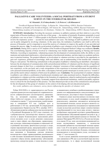 Статья: ВОЛОНТЕР ПАЛЛИАТИВНОЙ МЕДИЦИНСКОЙ ПОМОЩИ: СОЦИАЛЬНЫЙ ПОРТРЕТ ПО РЕЗУЛЬТАТАМ ОПРОСА СТУДЕНТОВ В СВЕРДЛОВСКОЙ ОБЛАСТИ (2025)