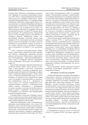 Ключевые фразы: волонтеры паллиативной помощи, анкетирование, факторы, влияющие на специфику доб- ровольческой деятельности