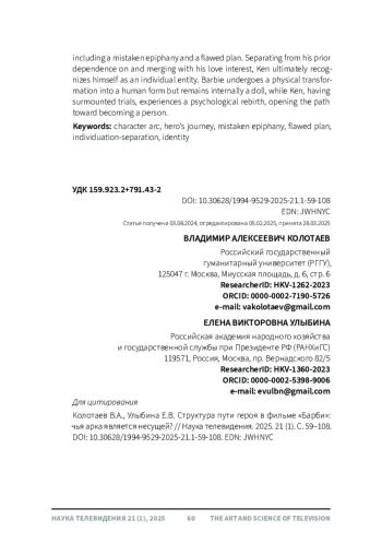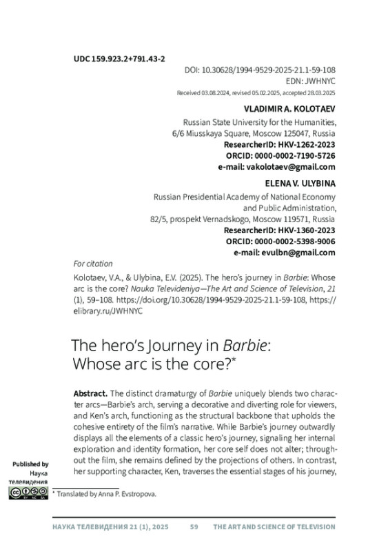 27. Yakalı, D. (2024). “He is just Ken”: deconstructing hegemonic masculinity in Barbie (2023 Movie). Frontiers in Sociology, 9, 1320774. DOI: 10.3389/fsoc.2024.1320774 EDN: GCYTYI