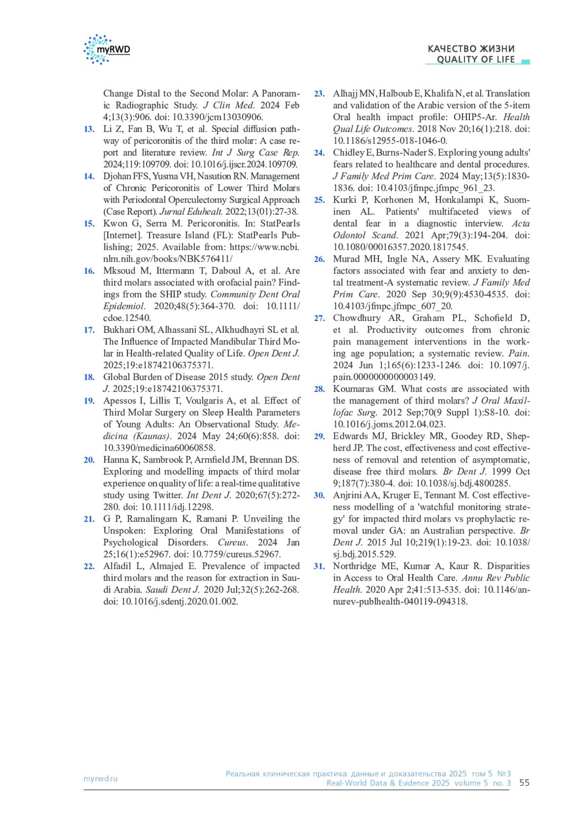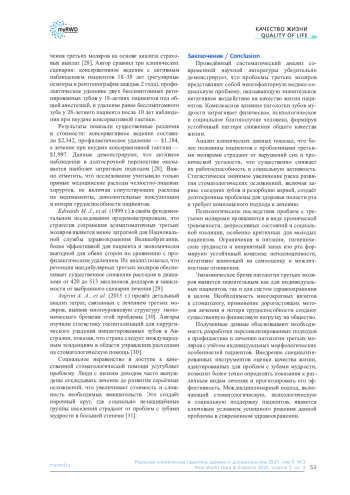 Статья: Влияние третьих моляров на качество жизни в современном обществе (2025)