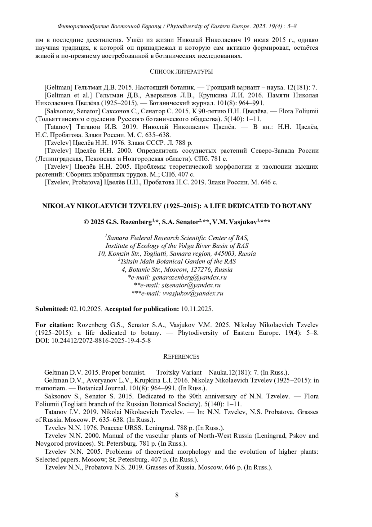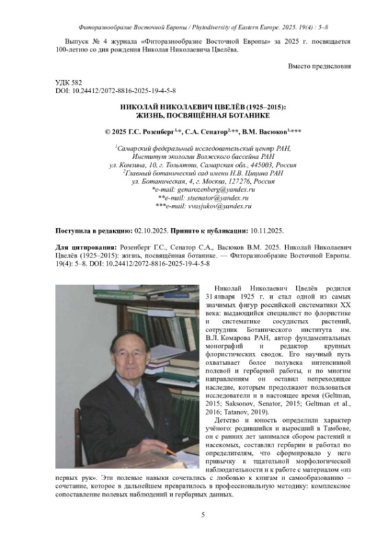 3. [Saksonov, Senator] Саксонов С., Сенатор С. 2015. К 90-летию Н.Н. Цвелёва. - Flora Foliumii (Тольяттинского отделения Русского ботанического общества). 5(140): 1-11.