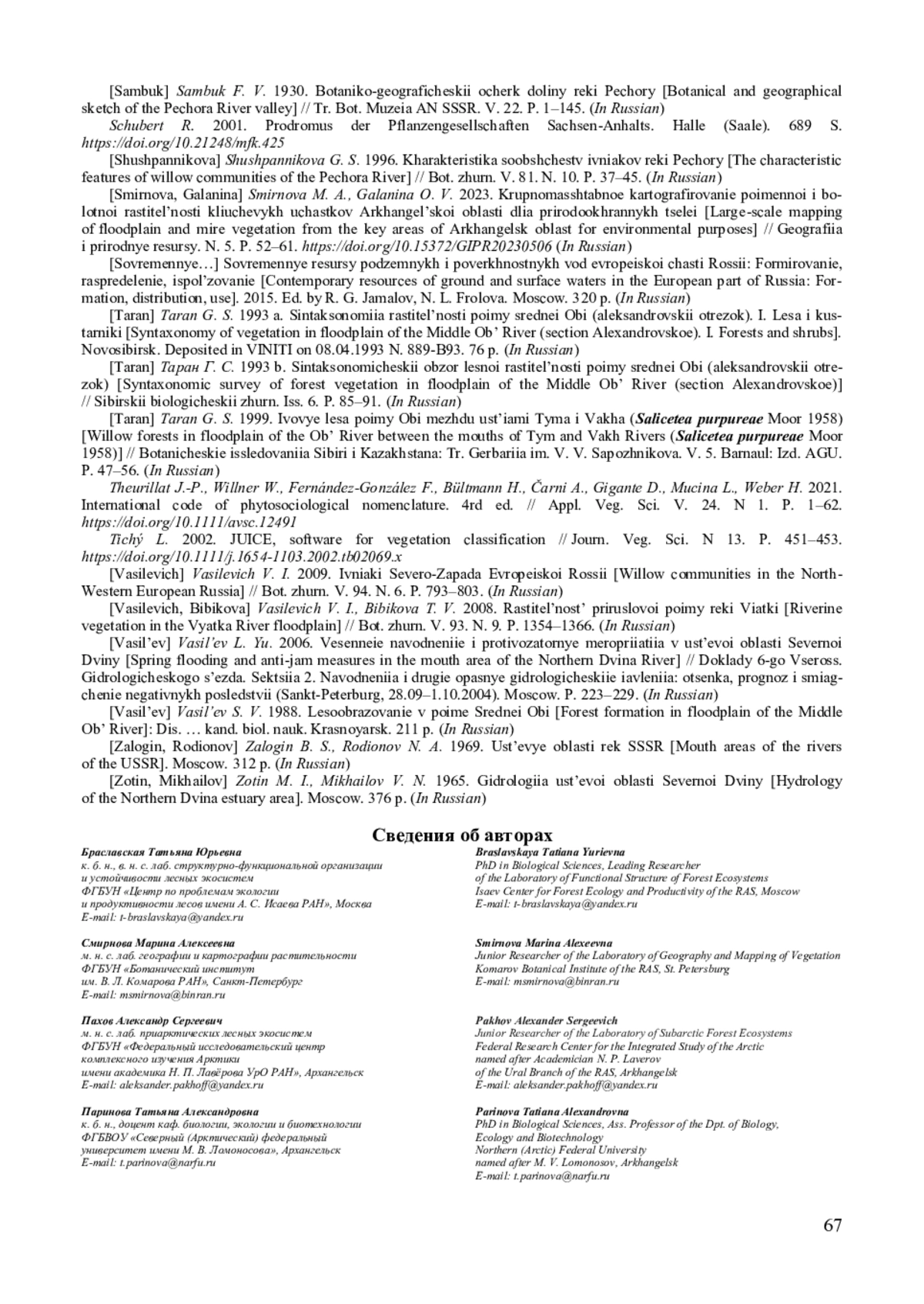 42. Шушпанникова Г.С. 1996. Характеристика сообществ ивняков реки Печоры // Бот. журн. Т. 81. № 10. С. 37-45.
