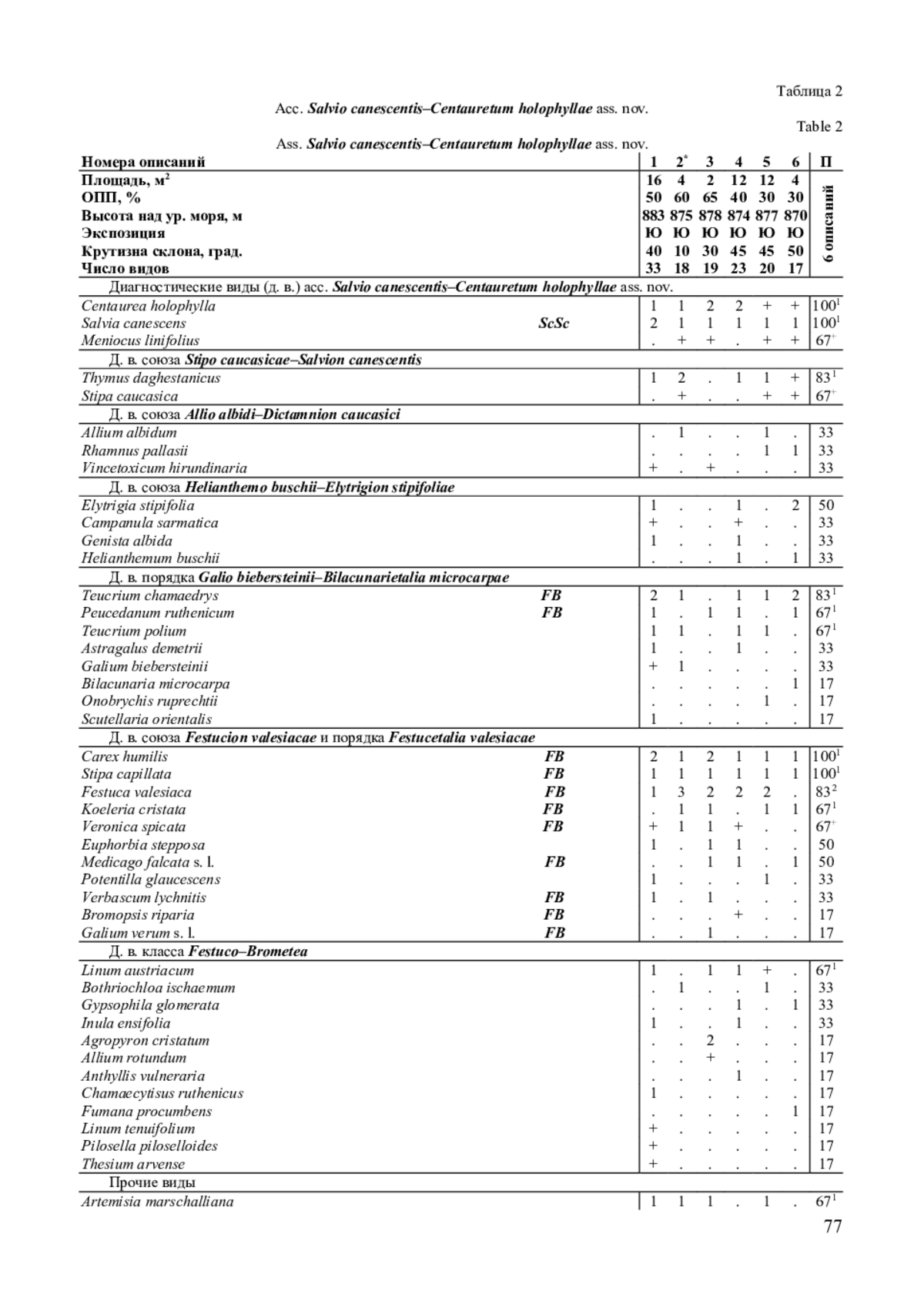 7. Лысенко Т. М., Щукина К. В., Нешатаева В. Ю., Шильников Д. С., Дутова З. В. 2021. Новые высшие синтаксоны степной растительности Северного Кавказа // Разнообразие растительного мира. № 2 (9). С. 59-75. DOI: 10.22281/2686-9713-2021-2-59-75 EDN: DYSVUL