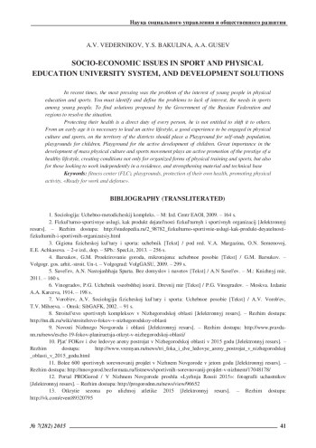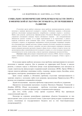 Статья: СОЦИАЛЬНО-ЭКОНОМИЧЕСКИЕ ПРОБЛЕМЫ В ОБЛАСТИ СПОРТА И ФИЗИЧЕСКОЙ КУЛЬТУРЫ СИСТЕМЫ ВУЗА, ПУТИ РЕШЕНИЯ И РАЗВИТИЯ (2015)