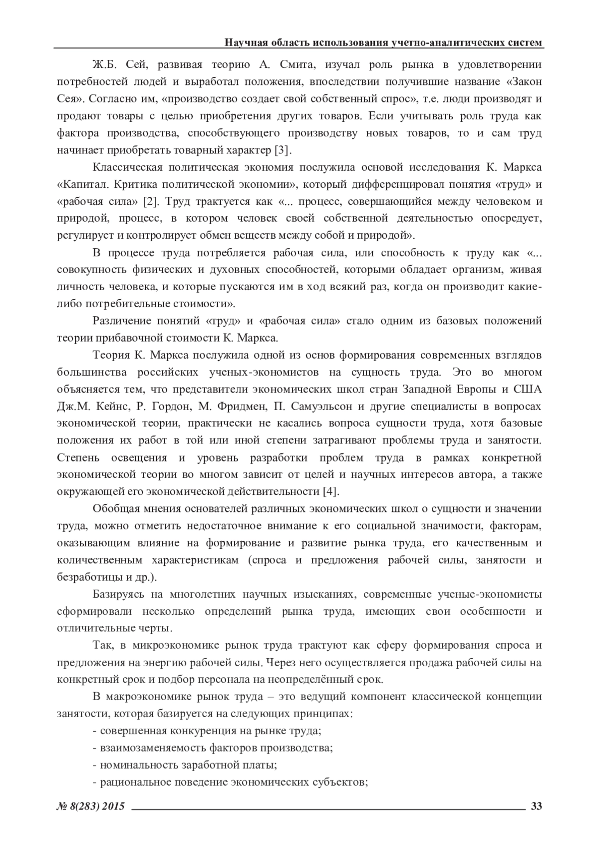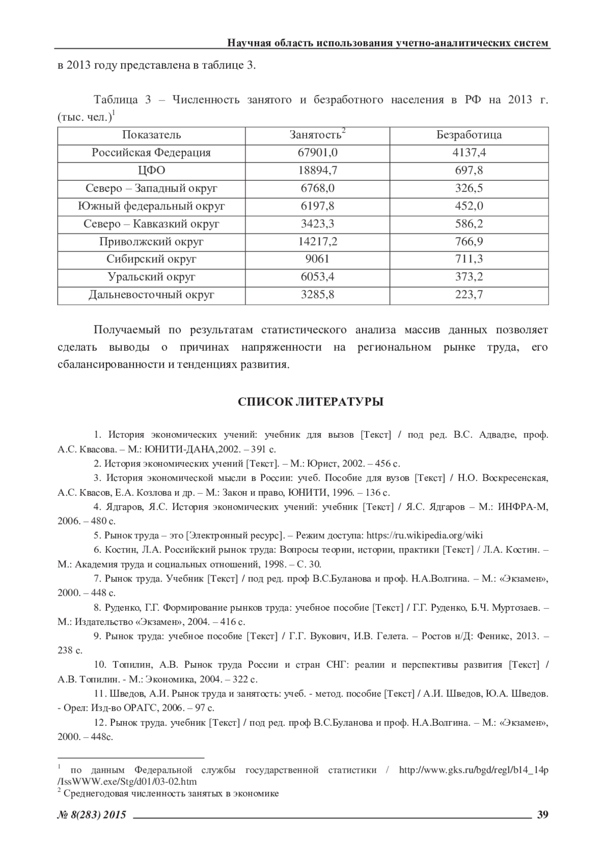 Статья: АНАЛИЗ КАТЕГОРИИ "РЫНОК ТРУДА" ДЛЯ ЦЕЛЕЙ СТАТИСТИЧЕСКОГО ИССЛЕДОВАНИЯ (2015)