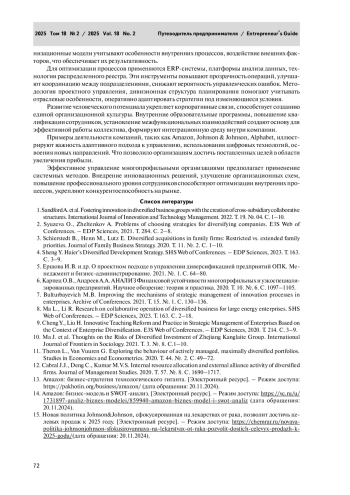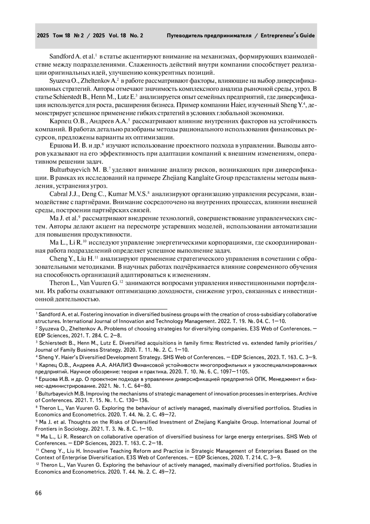 1. Sandford A. et al. Fostering innovation in diversified business groups with the creation of crosssubsidiary collaborative structures. International Journal of Innovation and Technology Management. 2022. Т. 19. №. 04. С. 1-10.