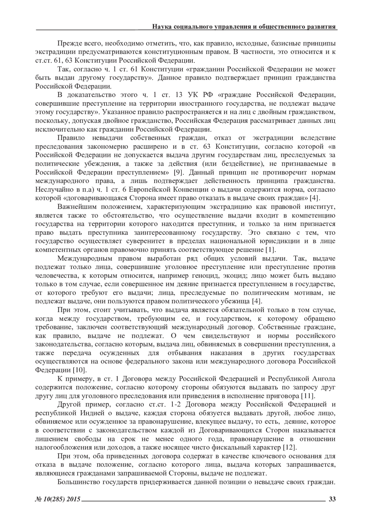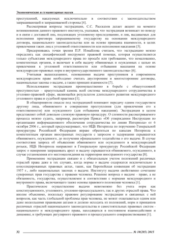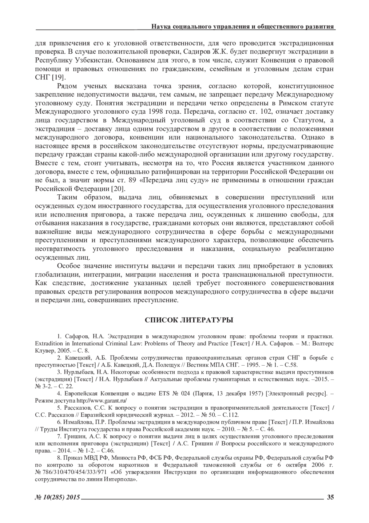 Статья: ПРАВОВЫЕ СРЕДСТВА РЕГУЛИРОВАНИЯ ВОПРОСОВ МЕЖДУНАРОДНОГО СОТРУДНИЧЕСТВА В СФЕРЕ ВЫДАЧИ И ПЕРЕДАЧИ ЛИЦ, СОВЕРШИВШИХ ПРЕСТУПЛЕНИЕ (2015)