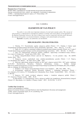 8. Современная налоговая политика Российской Федерации в ближайшей перспективе [Текст] / О.А. Якимова, О.С. Лыкова, Т.В. Павлюшкевич // Экономика. Право. Печать. Вестник КСЭИ. - 2014. - № 2 (62). - С. 280-292. EDN: SMKLVR