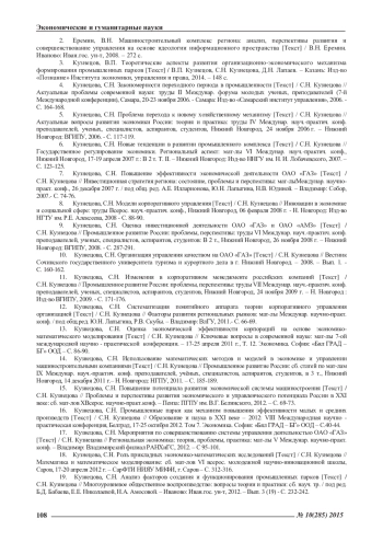 4. Кузнецова, С.Н. Закономерности переходного периода в промышленности [Текст] / С.Н. Кузнецова // Актуальные проблемы современной науки: труды II Междунар. форума молодых ученых, преподавателей (7-й Международной конференции), Самара, 20-23 ноября 2006. - Самара: Изд-во «Самарский институт управления», 2006. - С. 164-168.