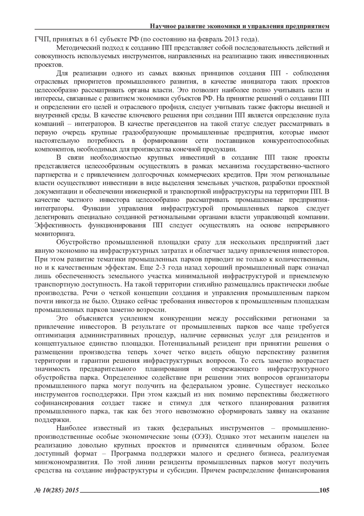 Под промышленным парком (ПП) целесообразно понимать – договорную межфирменную производственную сеть малых и средних хозяйствующих субъектов (резидентов ПП), расположенных на специально созданной и управляемой промышленной зоне с единой инженерной инфраструктурой и технологически связанных с крупным предприятием (интегратором ПП), осуществляющим разработку и производство конечной продукции