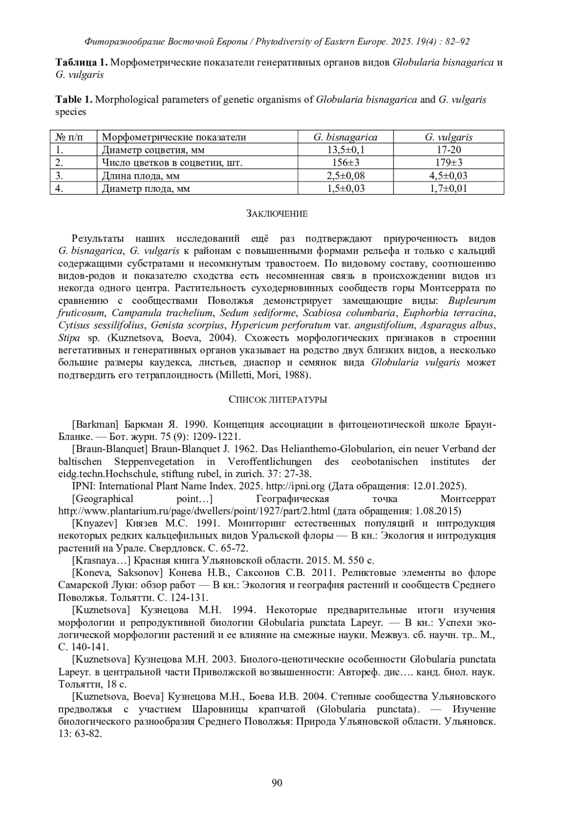 7. [Kuznetsova] Кузнецова М.Н. 1994. Некоторые предварительные итоги изучения морфологии и репродуктивной биологии Globularia punctata Lapeyr. - В кн.: Успехи экологической морфологии растений и ее влияние на смежные науки. Межвуз. сб. научн. тр. М., С. 140-141.