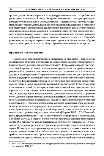 Градостроительство как теория и практика представляет собой сложный и многогранный процесс, связанный с планированием и застройкой городов. Эта сфера охватывает не только технические и экономические аспекты, но и глубоко социальные, экологические и эстетические стороны человеческой жизни. Градостроительство определенной эпохи основывается на идеалах и ценностях, характерных временных мировоззренческих убеждениях, которые формируют образ города, его функциональное значение, организуют принципы развития урбанистической инфраструктуры.