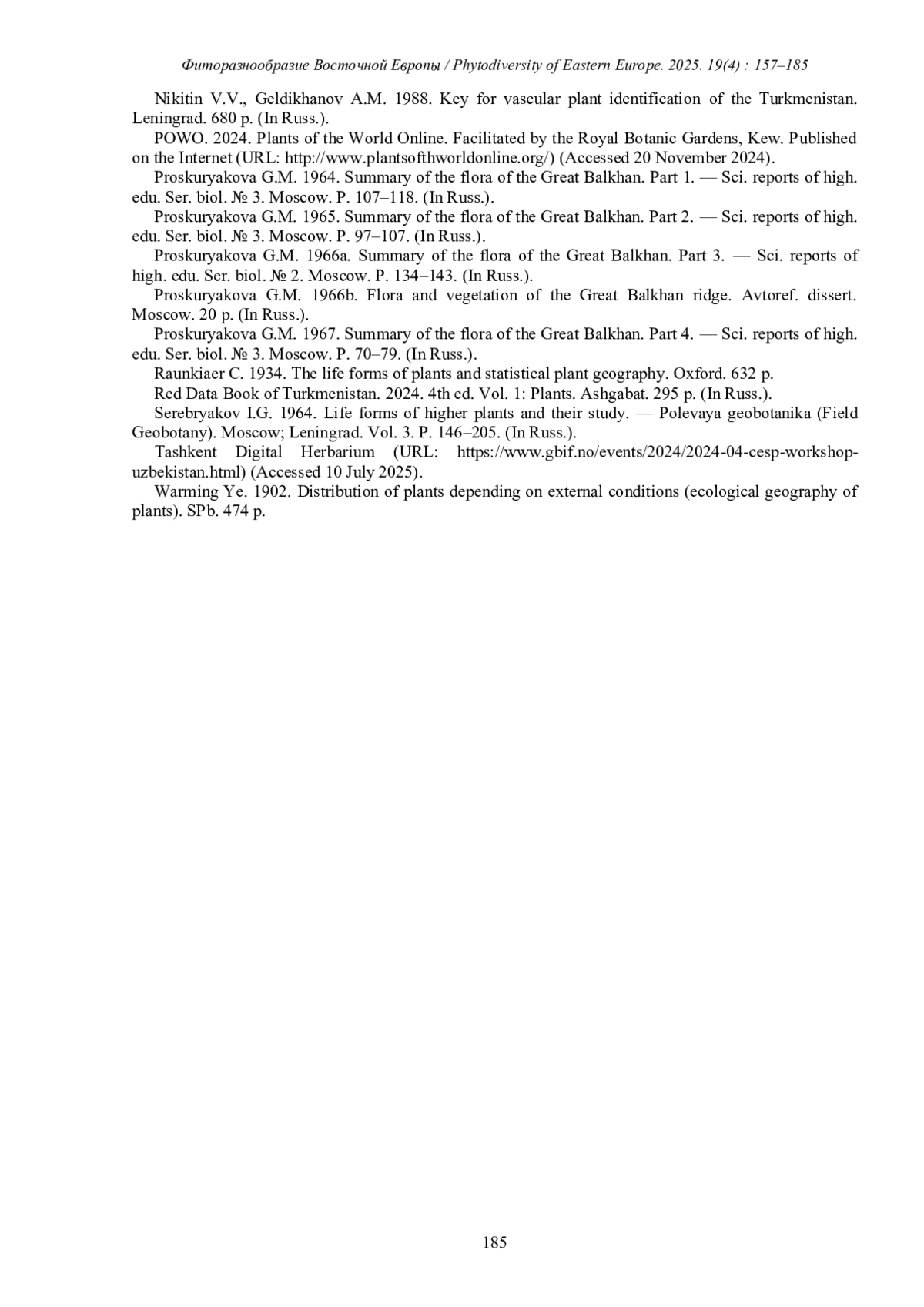 16. [Proskuryakova] Проскурякова Г.М. 1967. Конспект флоры Большого Балхана. Часть 4. - Науч. докл. высш. школы. Сер. биол. № 3. М. С. 70-79.