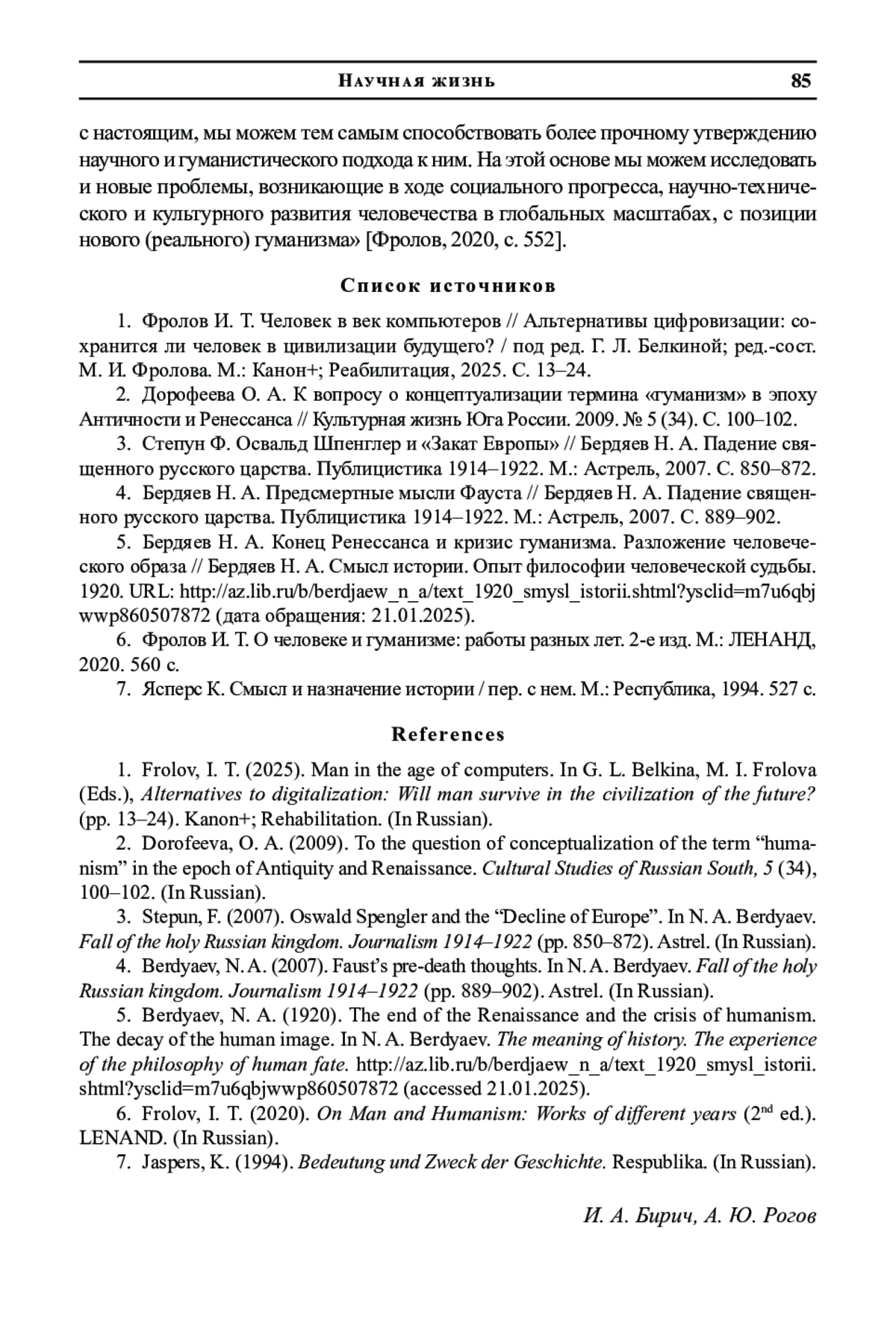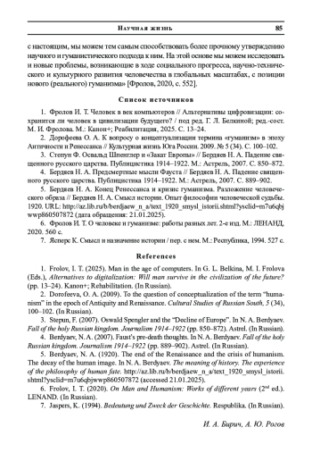 5. Бердяев Н. А. Конец Ренессанса и кризис гуманизма. Разложение человеческого образа // Бердяев Н. А. Смысл истории. Опыт философии человеческой судьбы. 1920. URL: http://az.lib.ru/b/berdjaew_n_a/text_1920_smysl_istorii.shtml?ysclid=m7u6qbjwwp860507872 (дата обращения: 21.01.2025).