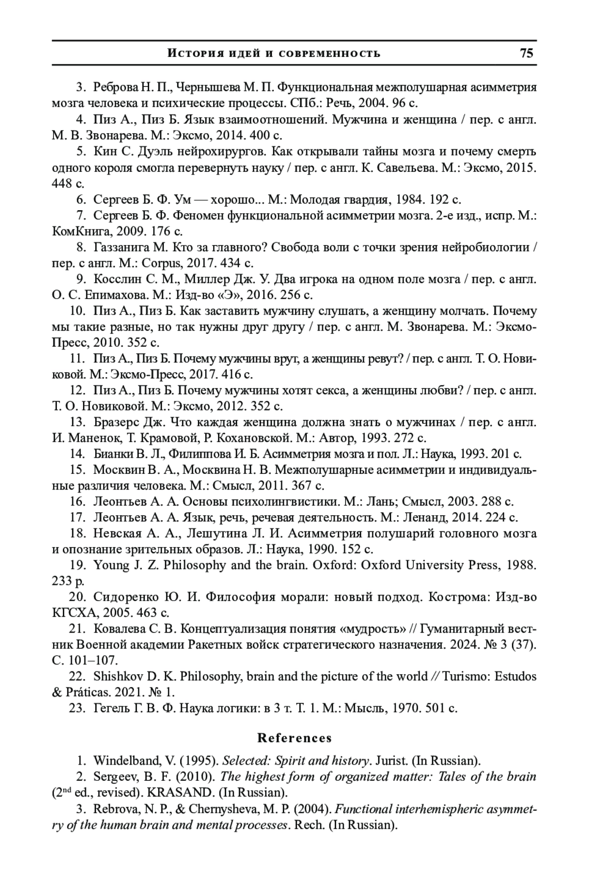 14. Бианки В. Л., Филиппова И. Б. Асимметрия мозга и пол. Л.: Наука, 1993. 201 с.