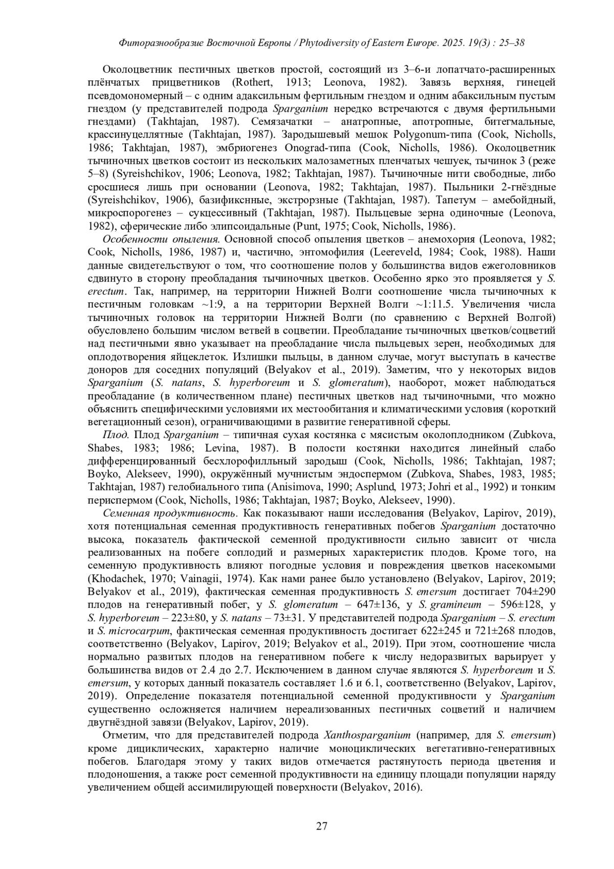 8. [Belyakov, Lapirov] Беляков Е.А., Лапиров А.Г. 2015. Прорастание плодов некоторых представителей семейства Sparganiaceae Rudolphi в лабораторных условиях. - Биол. внутр. вод. 1: 38-42. DOI: 10.7868/S0320965215010039 EDN: THHZJR