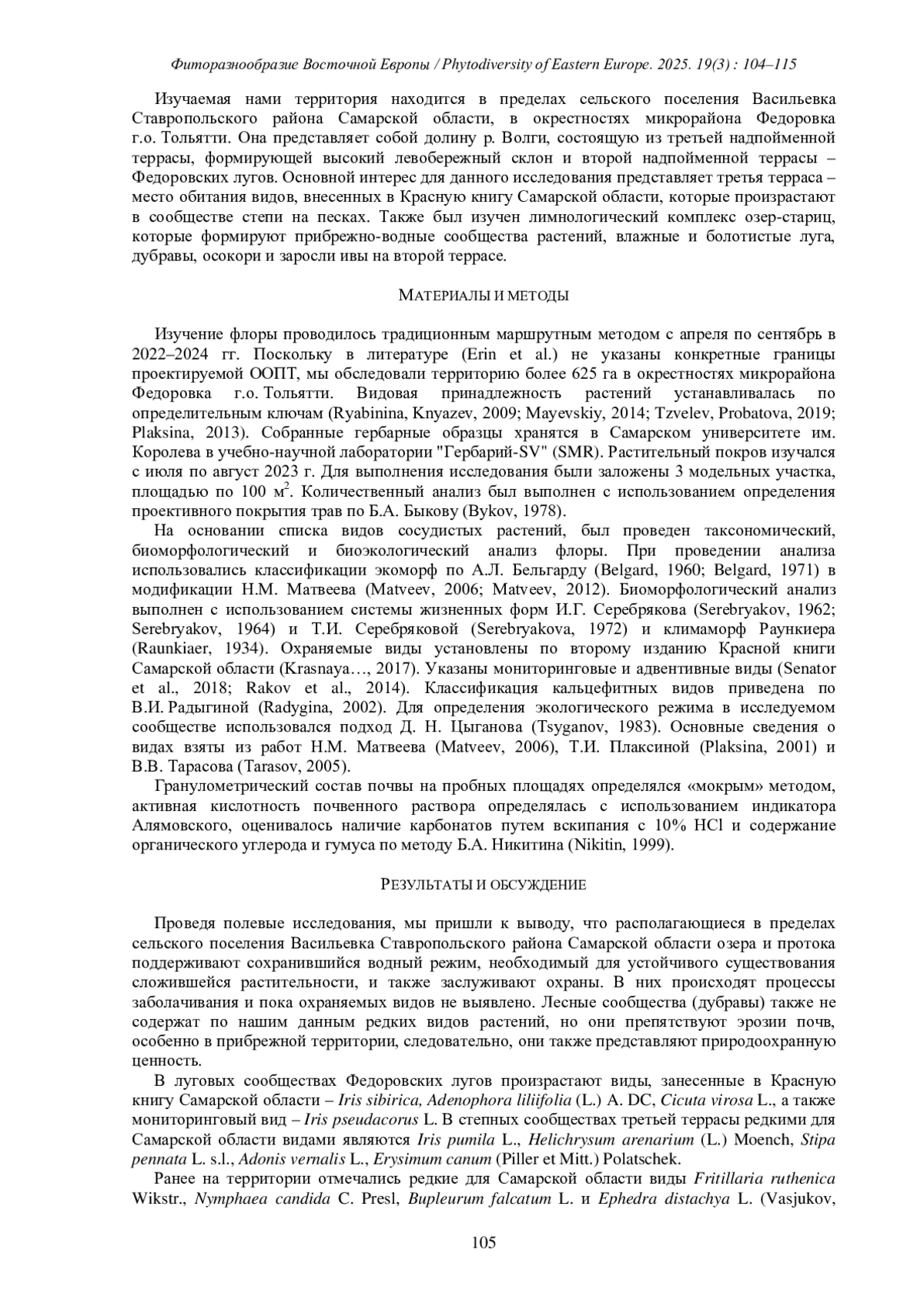 23. [Trantina] Трантина Е.В., Лысенко Т.М. 2017. Результаты исследования флоры степных сообществ Ставропольского района Самарской области. - Самарская Лука: проблемы региональной и глобальной экологии. 26(4): 219-222. EDN: YMAMFN