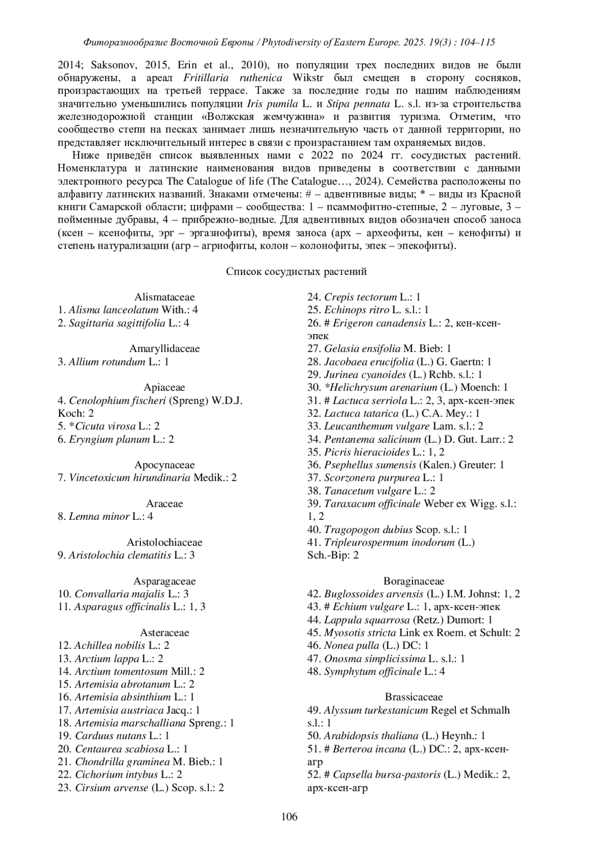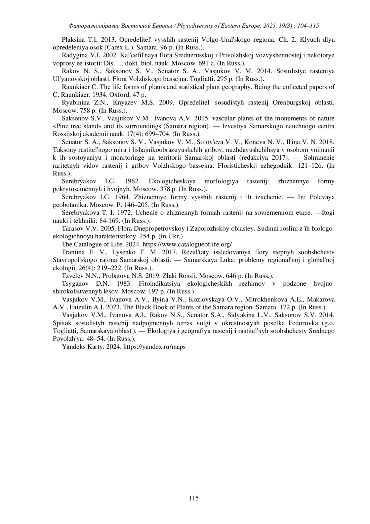26. [Vasjukov et. al] Васюков В.М., Иванова А.В., Ильина В.Н. Козловская О.В., Митрошенкова А.Е., Макарова Ю.В., Файзулин А.И. 2023. Чёрная книга растений Самарской области. Самара. 172 с. EDN: LHUVUW