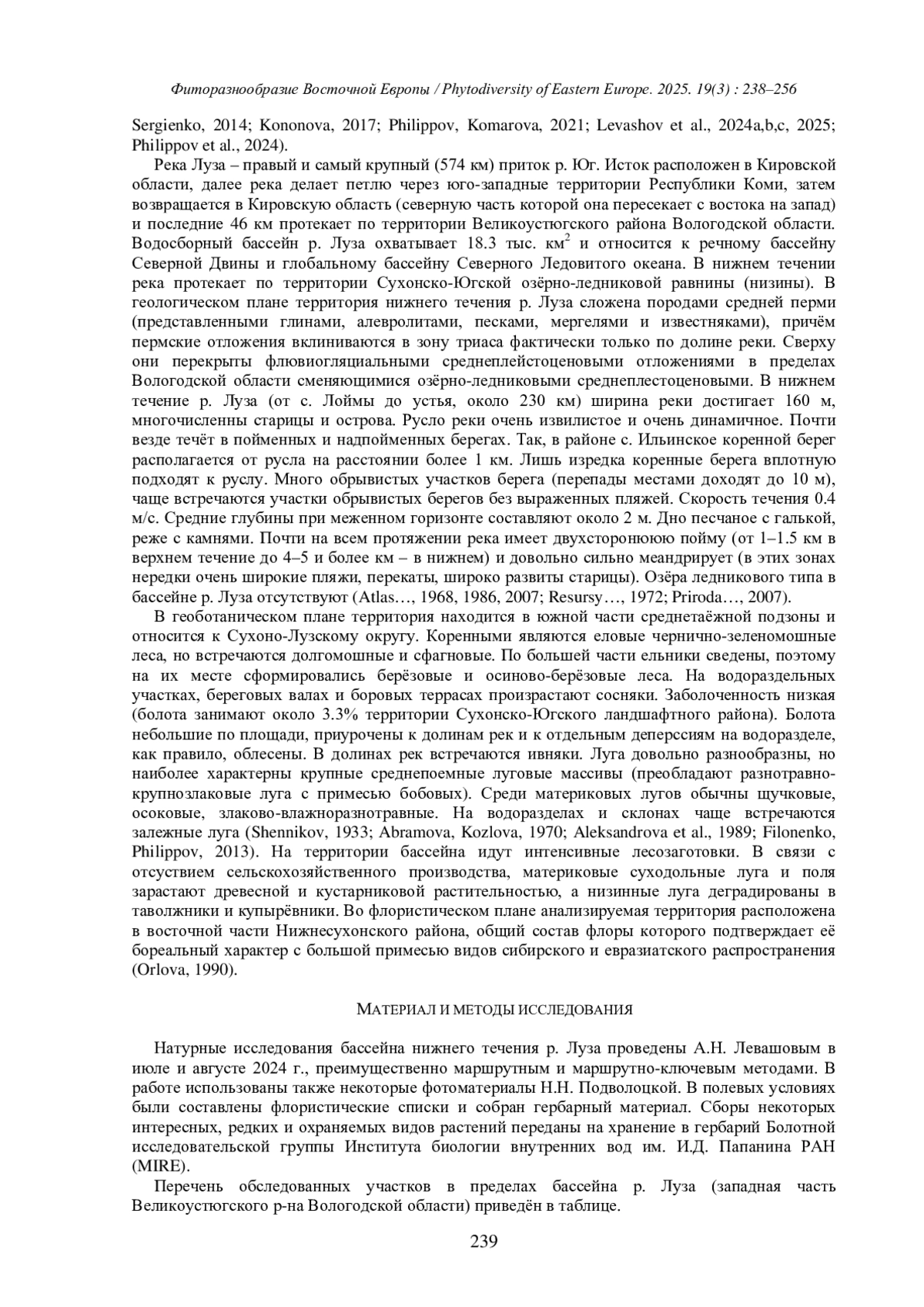 15. [Levashov et al.] Левашов А.Н., Романовский А.Ю., Филиппов Д.А. 2024c. Находки редких и охраняемых сосудистых растений бассейна реки Сухоны (нижний участок). - Фиторазнообразие Восточной Европы. 18 (3): 96-140. DOI: 10.24412/2072-8816-2024-18-3-96-140 EDN: UVMHYS