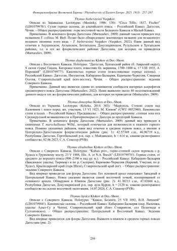 19. [Vasjukov] Васюков В.М. 2022. Обзор рода Thymus (Lamiaceae) Российского Кавказа. - Ботанический журнал. 107(5): 453-465. DOI: 10.31857/S000681362205009X EDN: MOGBSR