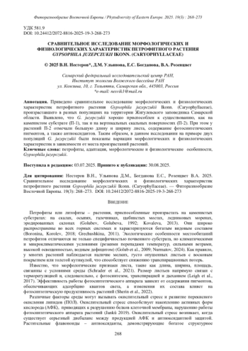 2. Bogdanova E., Ivanova L., Yudina P., Semenova G., Nesterov V., Rozentsvet O. 2022a. Seasonal dynamics of functional parameters of wintergreen steppe relict Globularia punctata Lapeyr. - Flora. 289: 152037. DOI: 10.1016/j.flora.2022.152037