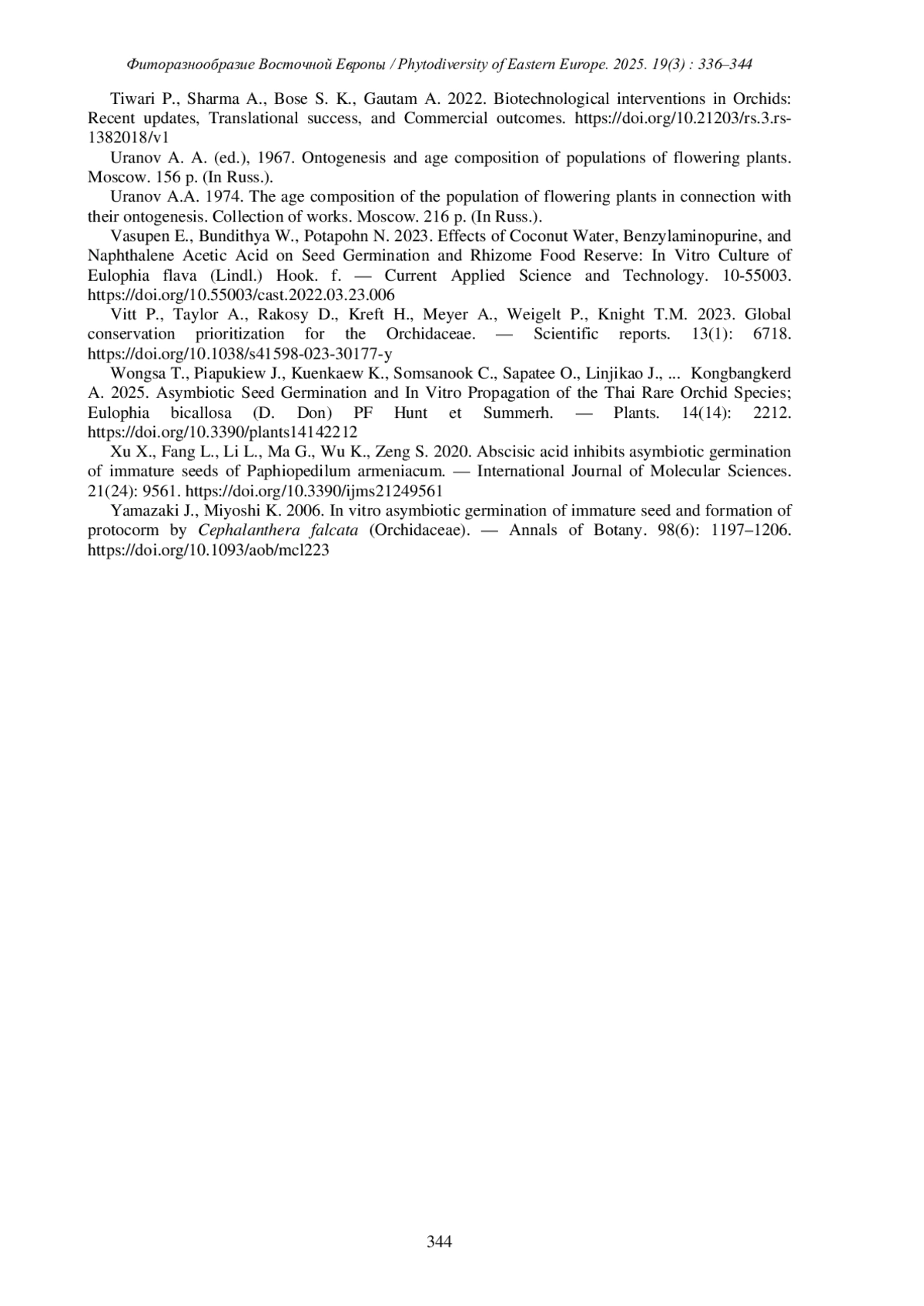 9. [Kolomeytseva et al.] Коломейцева Г.Л., Антипина В.А., Широков А.И., Хомутовский М.И., Бабоша А.И., Рябченко А.С. 2012. Семена орхидей: развитие, структура, прорастание. М. 352 с. EDN: QLDAGD