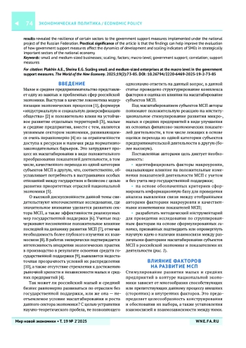 Статья: Масштабирование субъектов малого и среднего предпринимательства на макроуровне при реализации мер государственной поддержки (2025)