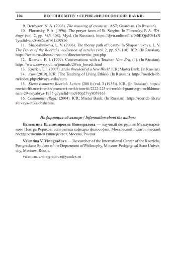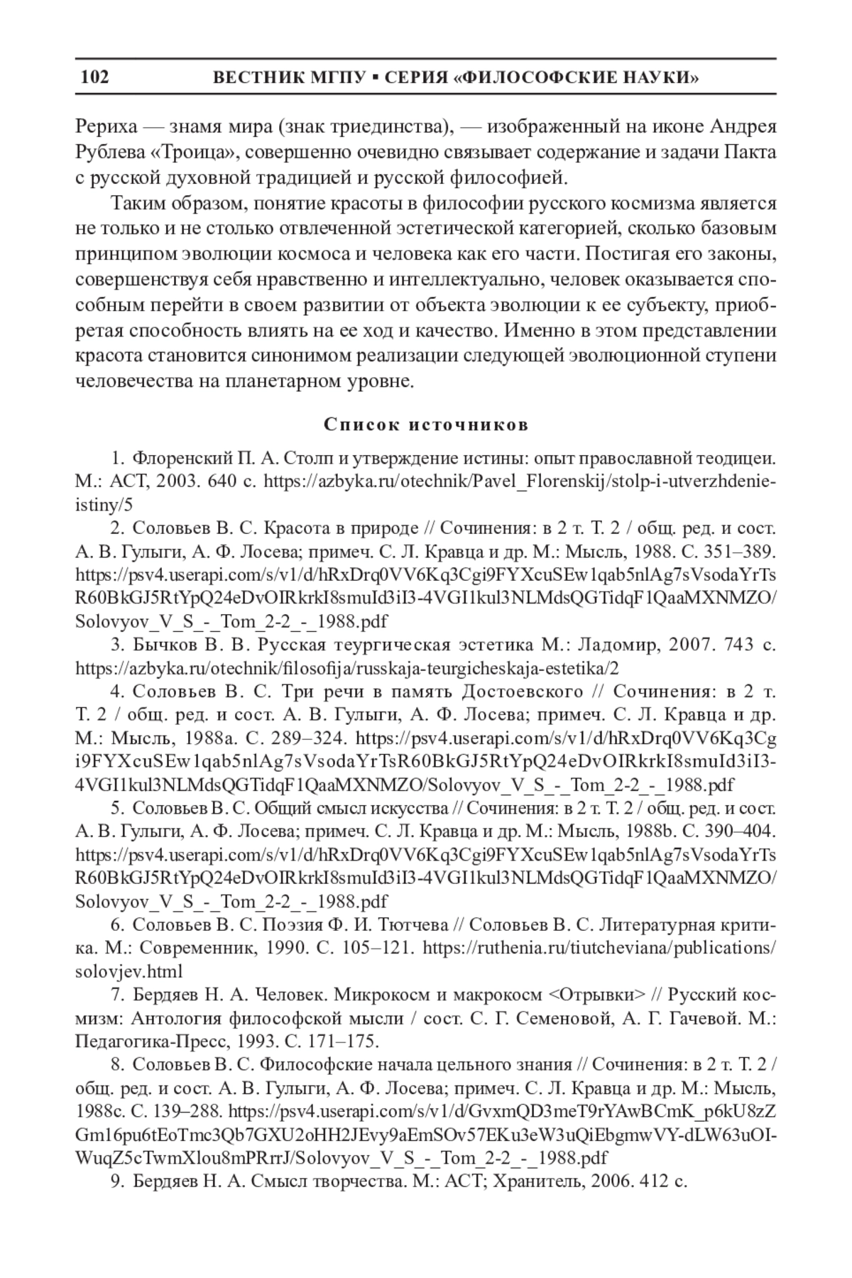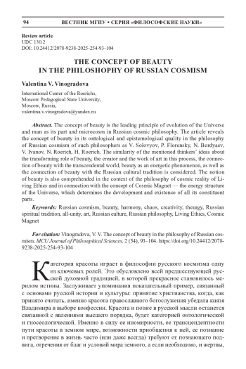 ВИНОГРАДОВА В. В. ПОНЯТИЕ КРАСОТЫ В ФИЛОСОФИИ РУССКОГО КОСМИЗМА // ВЕСТНИК МГПУ. СЕРИЯ: ФИЛОСОФСКИЕ НАУКИ. 2025. № 2 (54)