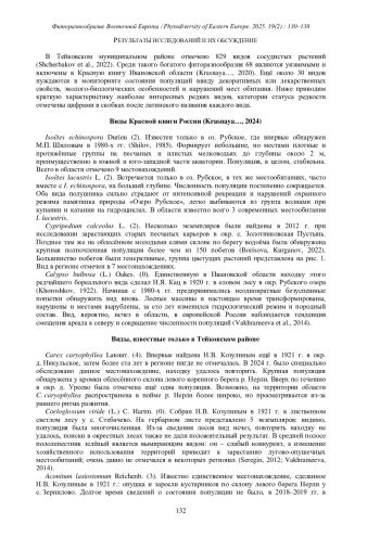 8. [Borisova et al.] Борисова Е.А., Курганов А.А., Суслова Е.Г. 2021. Новые местонахождения редких видов растений и грибов в Ивановской области. - Фиторазнообразие Восточной Европы. 15(3): 39-46. EDN: VGSPUS