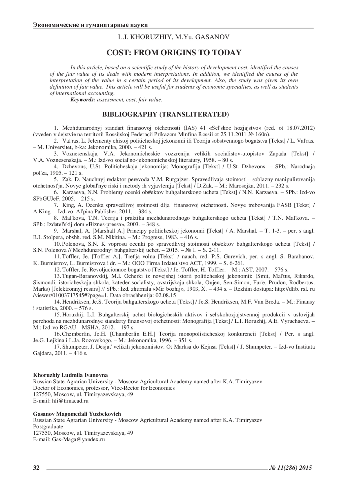 ХОРУЖИЙ Л. И., ГАСАНОВ М. Ю. СТОИМОСТЬ: ОТ ИСТОКОВ ДО НАШИХ ДНЕЙ // ЭКОНОМИЧЕСКИЕ И ГУМАНИТАРНЫЕ НАУКИ. 2015. № 11 (286)