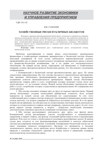 ГАМУКИН В. В. ХОЗЯЙСТВЕННЫЕ РИСКИ ПУБЛИЧНЫХ БЮДЖЕТОВ // ЭКОНОМИЧЕСКИЕ И ГУМАНИТАРНЫЕ НАУКИ. 2015. № 11 (286)