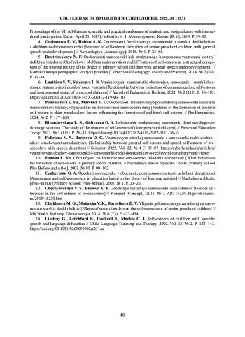Статья: ИЗУЧЕНИЕ ОСОБЕННОСТЕЙ САМООЦЕНКИ У СТАРШИХ ДОШКОЛЬНИКОВ С ОБЩИМ НЕДОРАЗВИТИЕМ РЕЧИ III УРОВНЯ (2025)