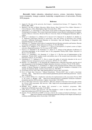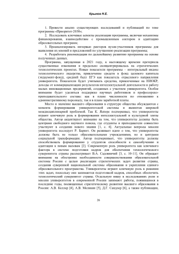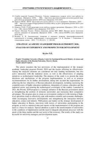 КРЫЛОВ Н. Е. ПРОГРАММА СТРАТЕГИЧЕСКОГО АКАДЕМИЧЕСКОГО ЛИДЕРСТВА «ПРИОРИТЕТ-2030»: АНАЛИЗ ОПЫТА И ПЕРСПЕКТИВЫ РАЗВИТИЯ // УЧЕНЫЕ ЗАПИСКИ КРЫМСКОГО ФЕДЕРАЛЬНОГО УНИВЕРСИТЕТА ИМЕНИ В. И. ВЕРНАДСКОГО. СОЦИОЛОГИЯ. ПЕДАГОГИКА. ПСИХОЛОГИЯ. 2025. ТОМ 11 (77). № 3