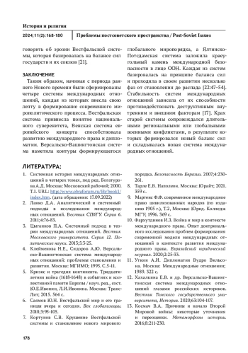 6. Саямов Ю.Н. Вестфальский мир и его границы вчера и сегодня. Век глобализации. 2018; 3:95-105.