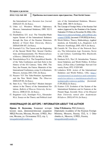 12. Хахалкина Е.В. и др. Версальско-Вашингтонская система международных отношений глазами российских историков. Вестник Томского государственного университета, История. 2020; 63:104-107.