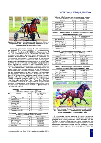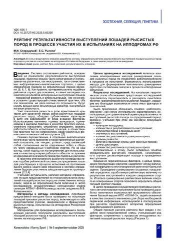 ведение. Система составления рейтингов, основанная на показателях результативности выступлений лошадей, практика весьма часто встречаемая и используемая на различных, как иностранных, так и отечественных информационно-аналитических порталах, с целью определения лидеров за определенный период времени. [5, 6, 7, 8]. Как правило, критерием расчета подобных рейтингов служат два основных, и самых наглядных показателя результатов ипподромных выступлений лошади - показанная резвость и сумма выигрыша. Тем не менее, в условиях существующей отечественной практики, оба эти показателя, на деле взятые по отдельности, будут носить весьма мало объективный характер, значительно искажая реальность.