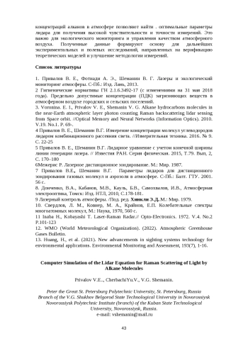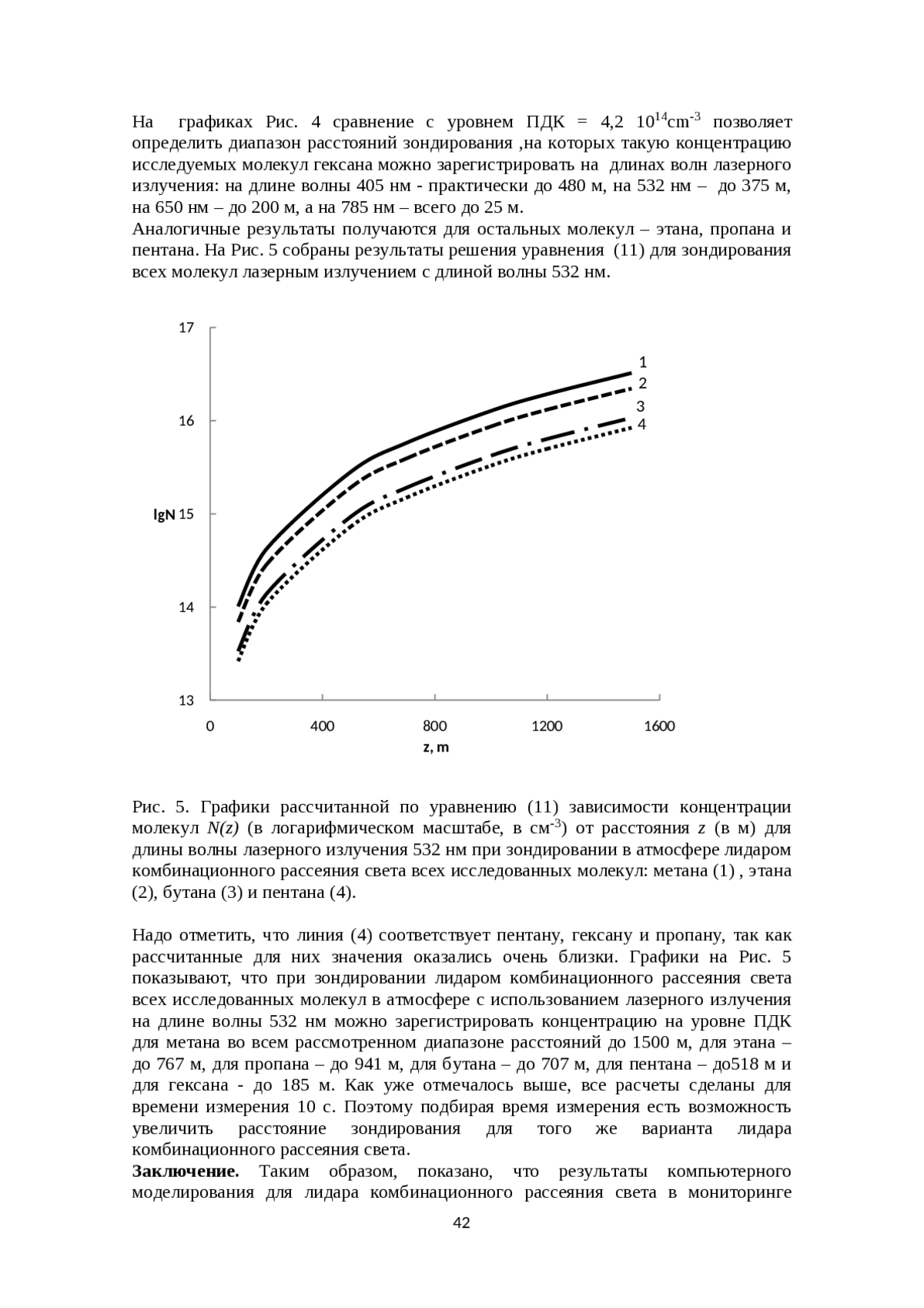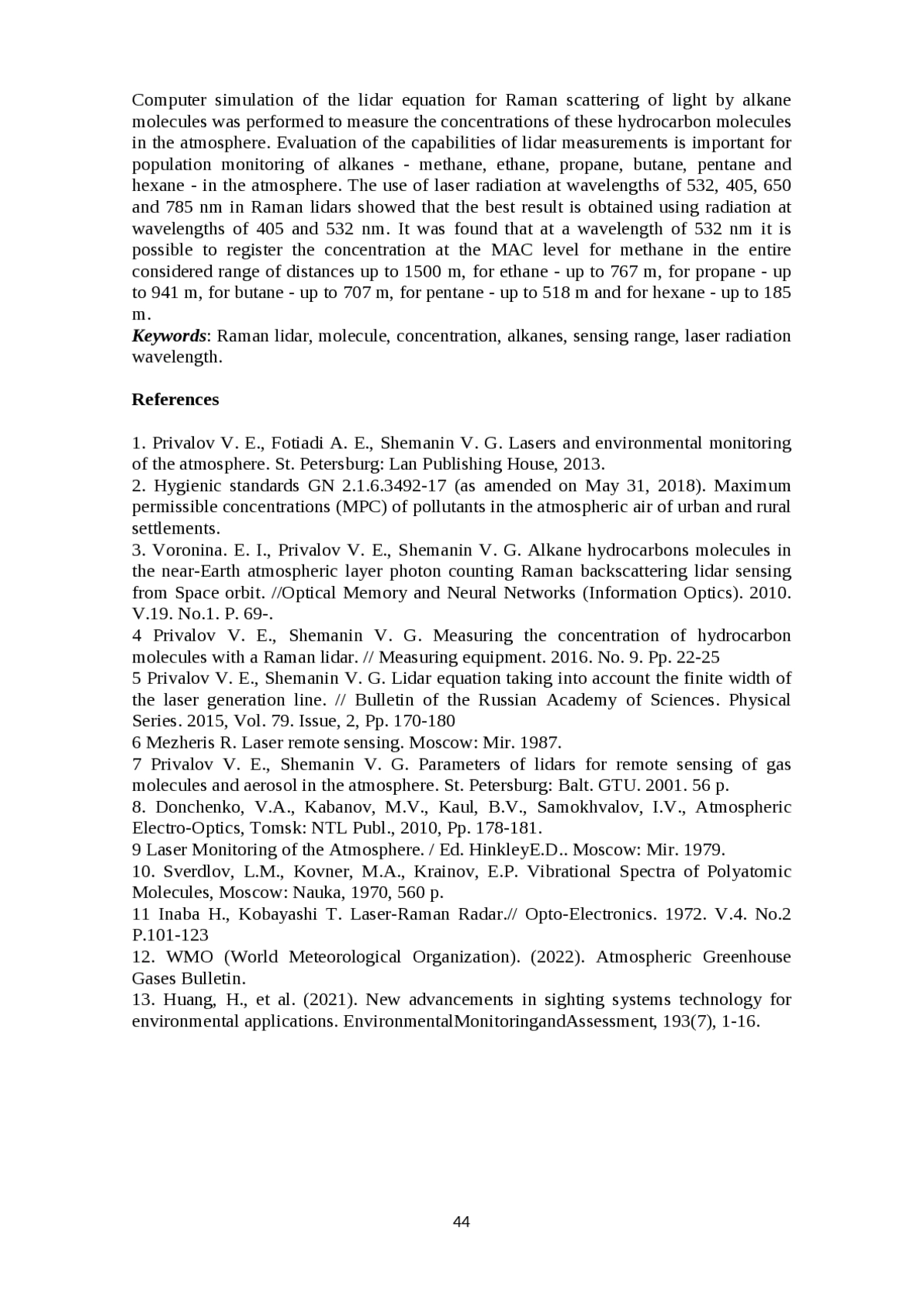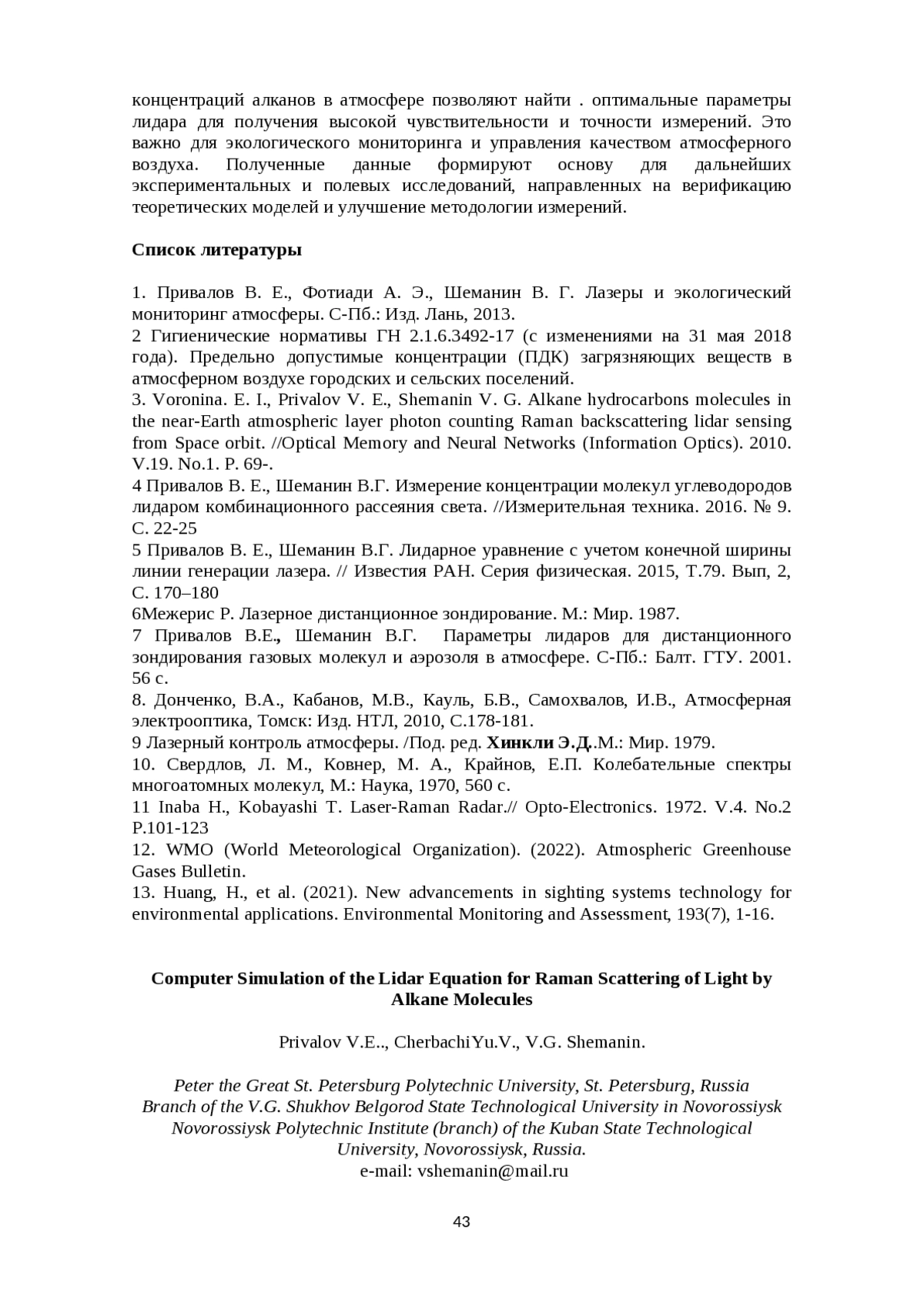 Статья: Компьютерное моделирования лидарного уравнения для комбинационного рассеяния света молекулами алканов (2024)
