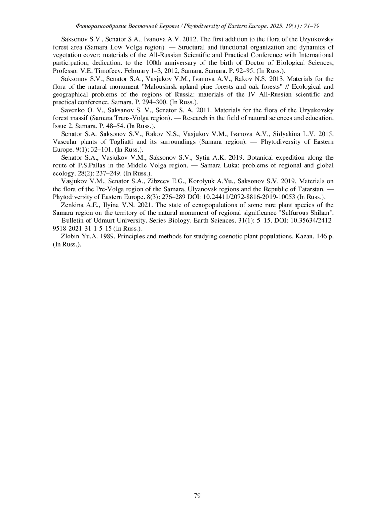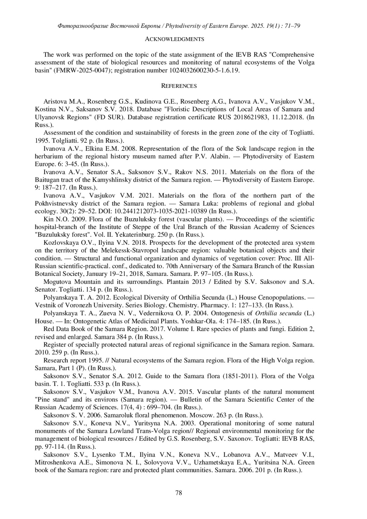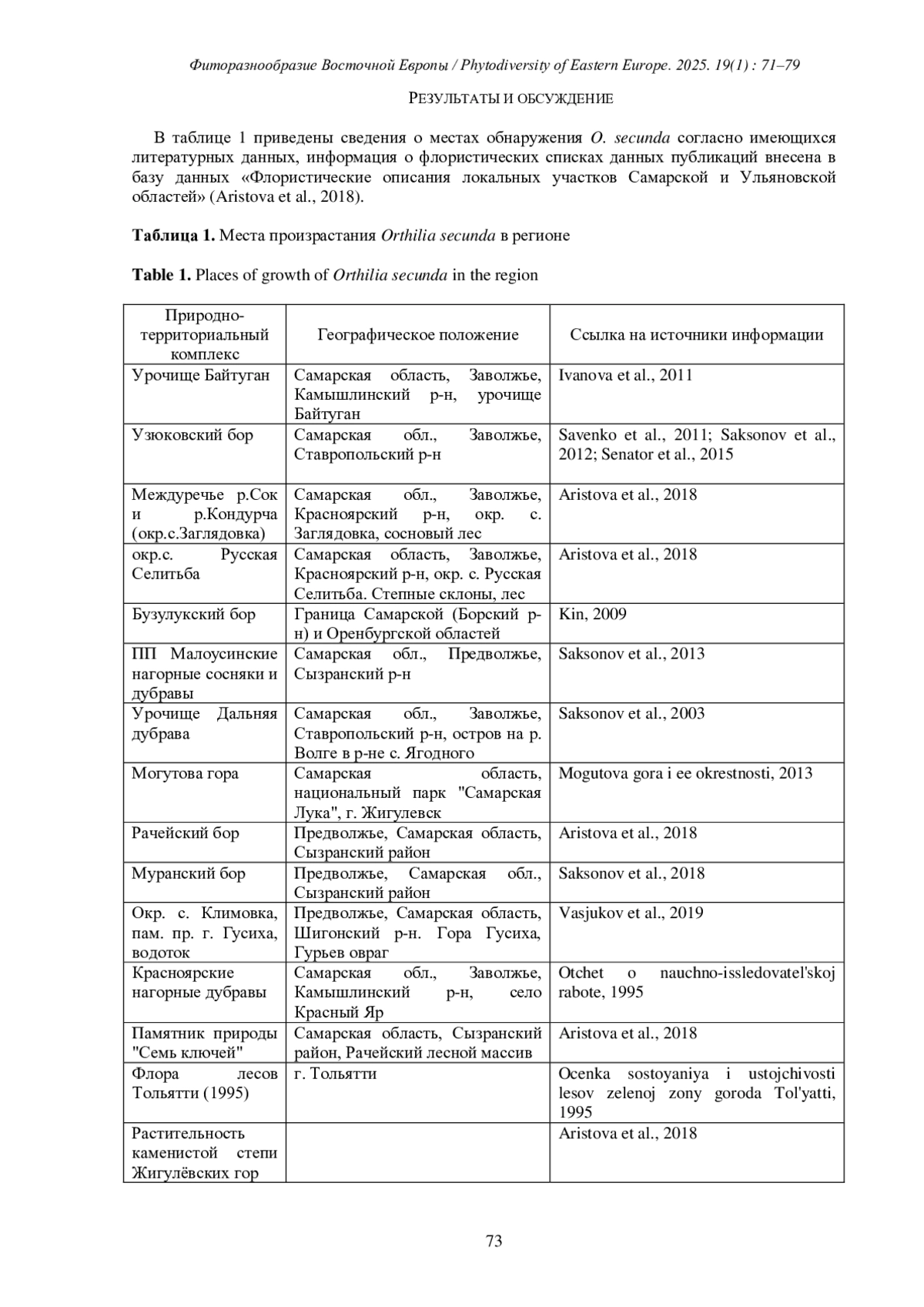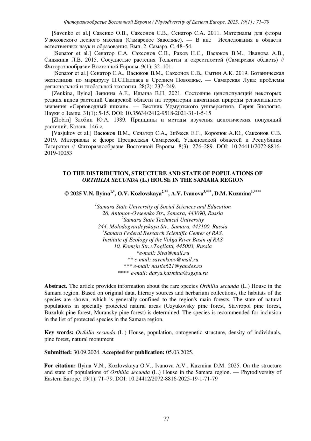 ИЛЬИНА В. Н., КОЗЛОВСКАЯ О. В., ИВАНОВА А. В., КУЗЬМИНА Д.М. К РАСПРОСТРАНЕНИЮ, СТРУКТУРЕ И СОСТОЯНИЮ ПОПУЛЯЦИЙ ORTHILIA SECUNDA (L.) HOUSE В САМАРСКОЙ ОБЛАСТИ // ФИТОРАЗНООБРАЗИЕ ВОСТОЧНОЙ ЕВРОПЫ. 2025. Т. 19 № 1 (17 СТ.)