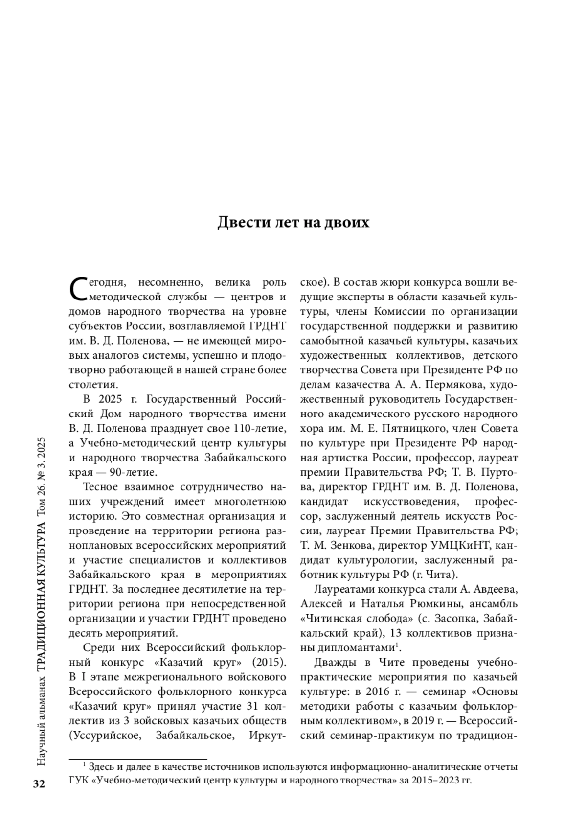 В 2025 г. Государственный Российский Дом народного творчества имени В. Д. Поленова празднует свое 110-летие, а Учебно-методический центр культуры и народного творчества Забайкальского края — 90-летие.