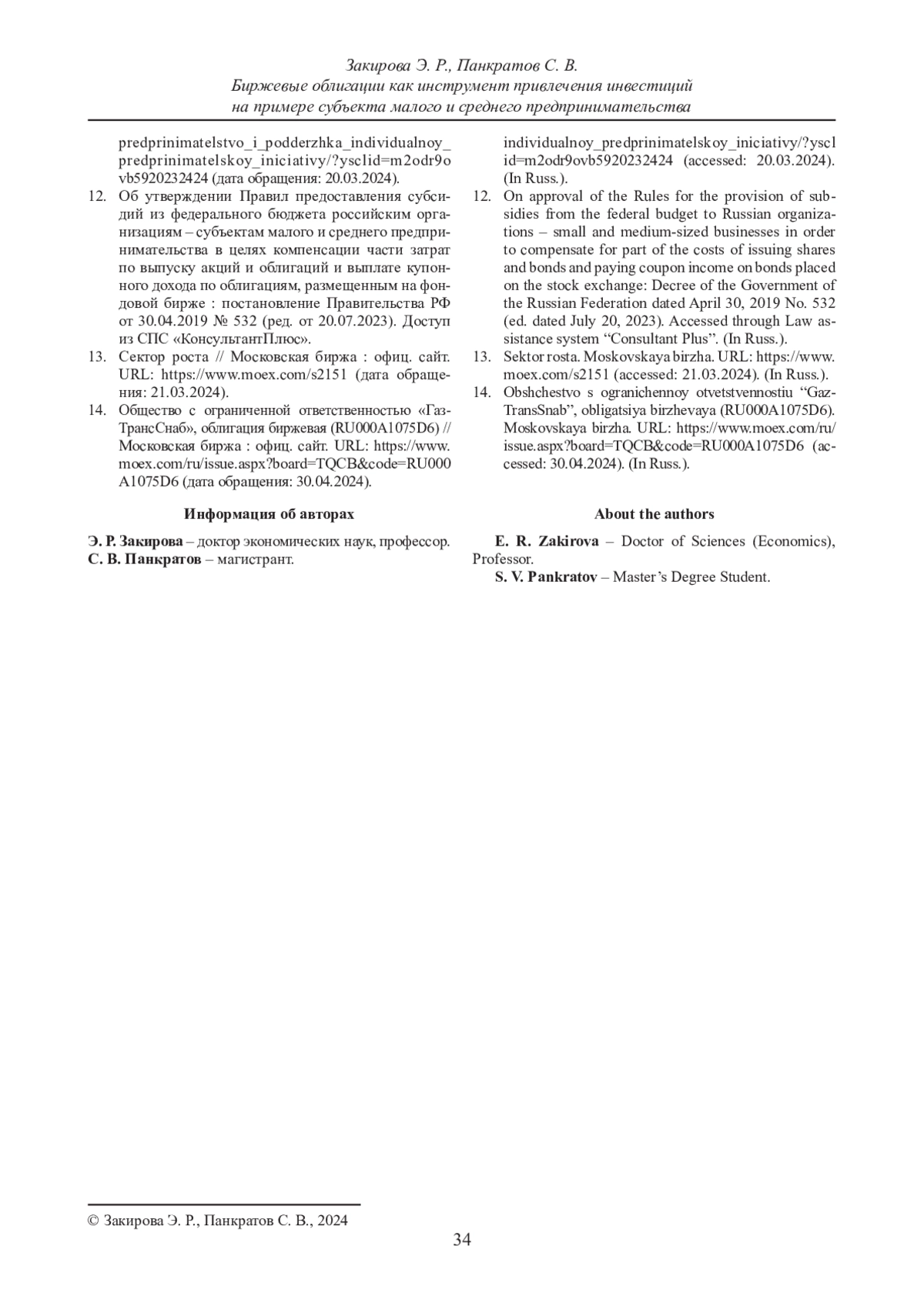 4. Касимова Д. Ф., Касимов Т. С. Облигации как источник финансирования малого и среднего бизнеса в России // Экономика и управление: научно-практический журнал. 2021. № 6. С. 157-161.