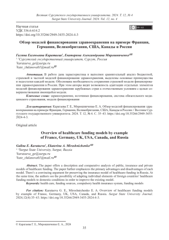 2. Омельяновский В. В., Максимова Л. В., Татаринов А. П. Зарубежный опыт: модели финансирования и организации систем здравоохранения // Финансовый журнал. 2014. № 3. С. 22-34.
