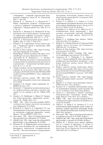 1. Быкова Н. В., Калинина М. С. Тренды электроэнергетики в рамках Индустрии 4.0 // Актуальные вопросы инновационного развития Арктического региона РФ : сб. материалов IV Всерос. науч.-прак-тич. конф., 14-30 ноября 2022 г., г. Северодвинск. Северодвинск : Северный (Арктический) федеральный универитет имени М. В. Ломоносова, 2023. С. 284-288.