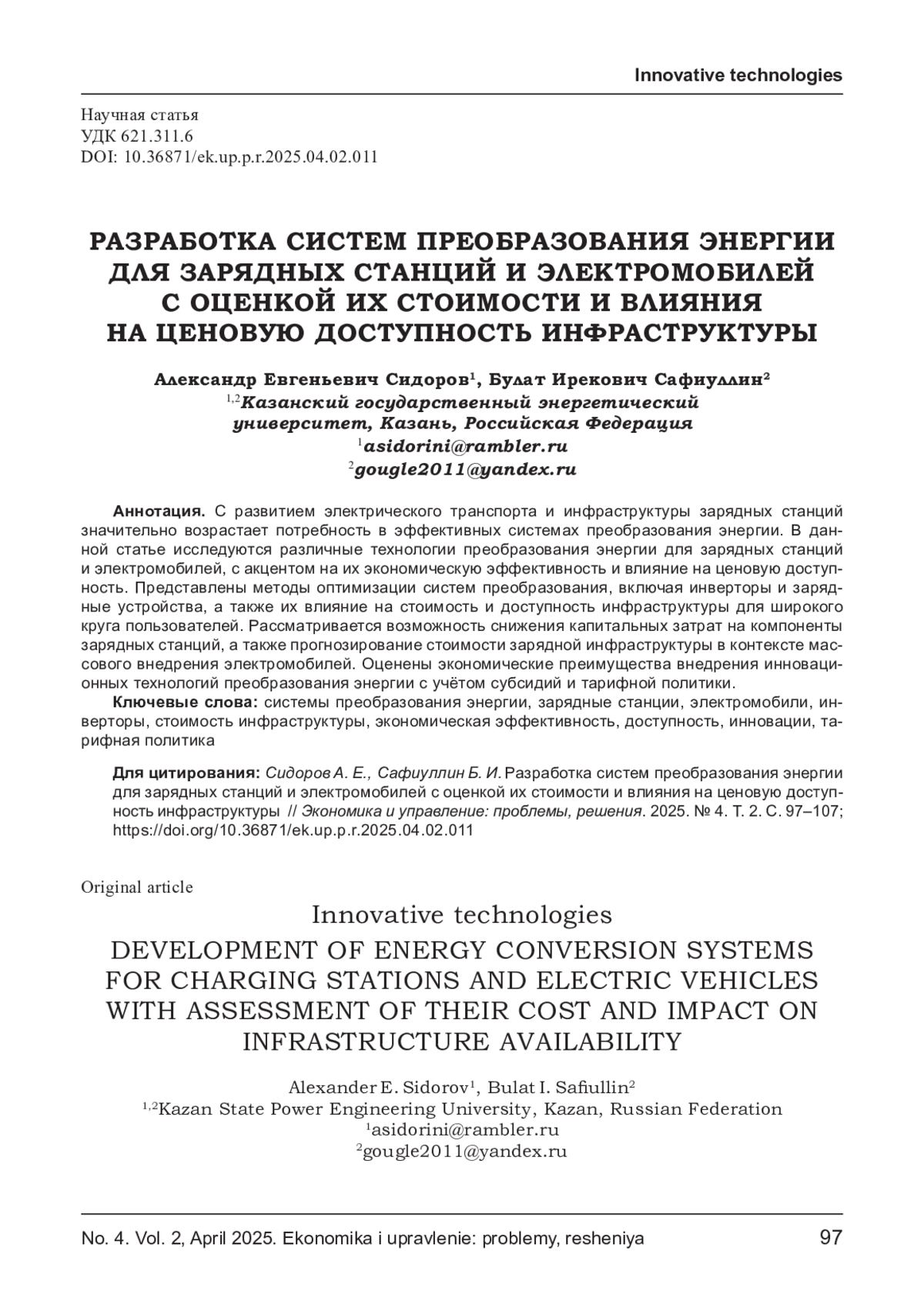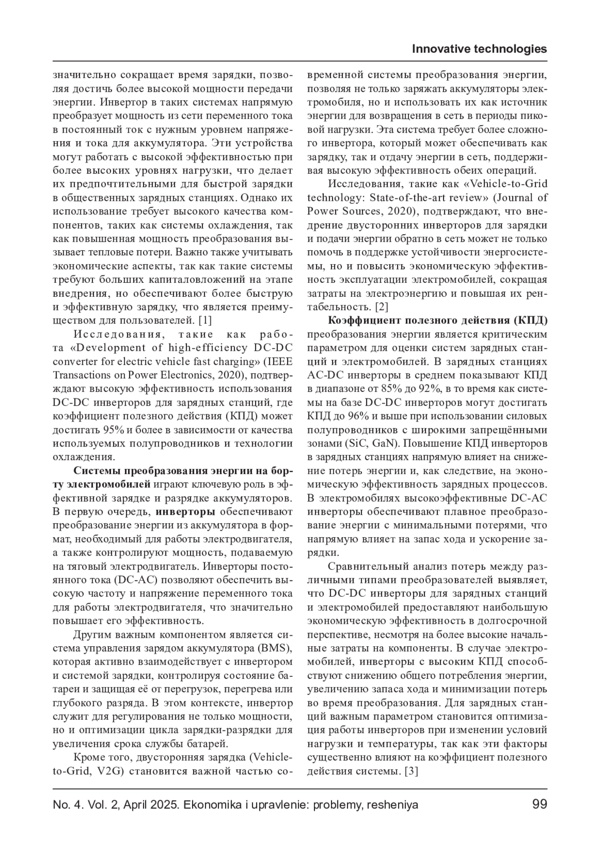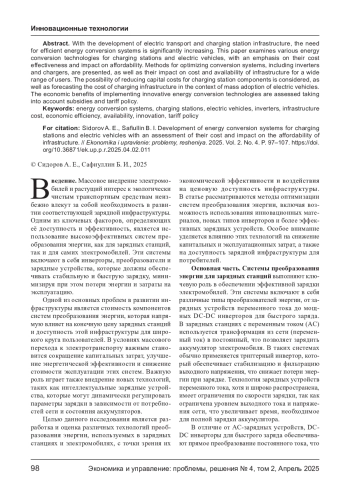 С развитием электрического транспорта и инфраструктуры зарядных станций значительно возрастает потребность в эффективных системах преобразования энергии. В данной статье исследуются различные технологии преобразования энергии для зарядных станций и электромобилей, с акцентом на их экономическую эффективность и влияние на ценовую доступность. Представлены методы оптимизации систем преобразования, включая инверторы и зарядные устройства, а также их влияние на стоимость и доступность инфраструктуры для широкого круга пользователей. Рассматривается возможность снижения капитальных затрат на компоненты зарядных станций, а также прогнозирование стоимости зарядной инфраструктуры в контексте массового внедрения электромобилей. Оценены экономические преимущества внедрения инновационных технологий преобразования энергии с учётом субсидий и тарифной политики.