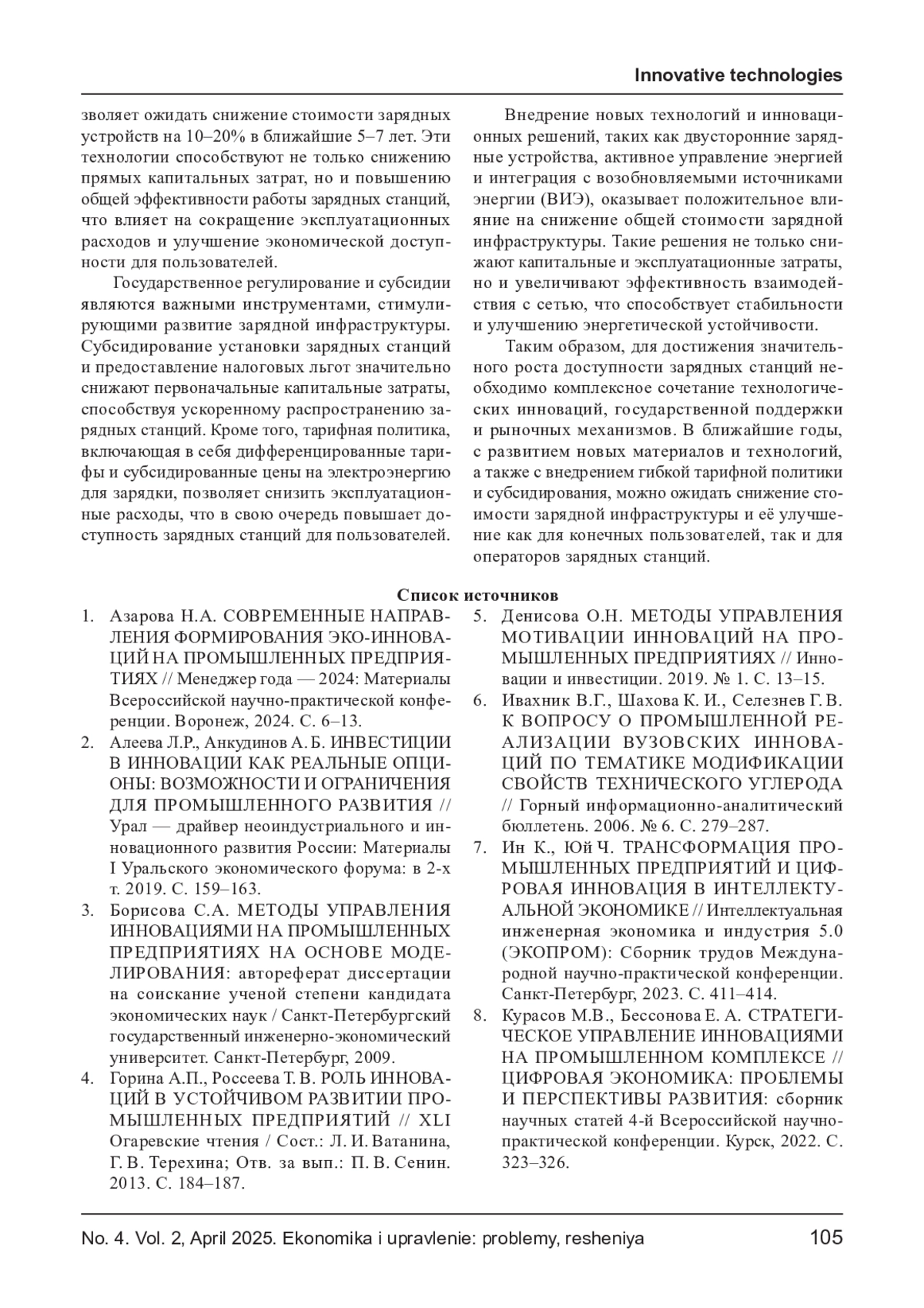 1. Азарова Н.А. СОВРЕМЕННЫЕ НАПРАВЛЕНИЯ ФОРМИРОВАНИЯ ЭКО-ИННОВАЦИЙ НА ПРОМЫШЛЕННЫХ ПРЕДПРИЯТИЯХ // Менеджер года - 2024: Материалы Всероссийской научно-практической конференции. Воронеж, 2024. С. 6-13. EDN: XUSKEK