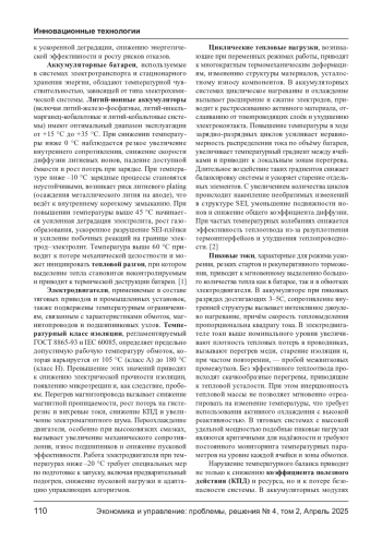 Современные аккумуляторные технологии играют ключевую роль в обеспечении устойчивой энергетики, электромобилей и резервного энергоснабжения. Однако ограниченный срок службы, склонность к перегреву, уязвимость к перезаряду и другие стресс - факторы существенно снижают надёжность и экономическую эффективность таких систем. В данной работе представлены инженерные и материаловедческие подходы к продлению срока службы аккумуляторов за счёт оптимизации их теплового и электрического режимов, а также интеграции интеллектуальных систем управления. Кроме того, предложена модель оценки совокупной стоимости владения (TCO), учитывающая влияние жизненного цикла батарей на затраты пользователя. Полученные результаты демонстрируют, что внедрение усовершенствованных конструкций и алгоритмов управления может существенно повысить устойчивость батарей при одновременном снижении эксплуатационных расходов.