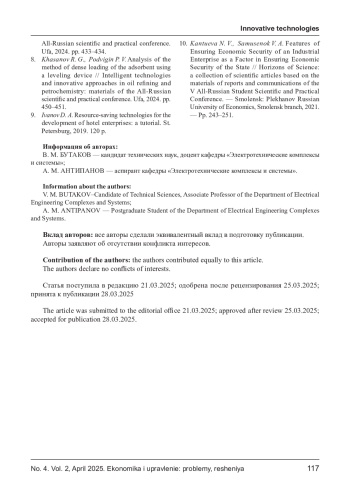 2. Воропай Н. И. Разработка инновационных технологий и средств для оценки и повышения гибкости будущих энергосистем: отчет о НИР № 19-49-04108. Российский научный фонд, 2019. EDN: ZNNUBQ
