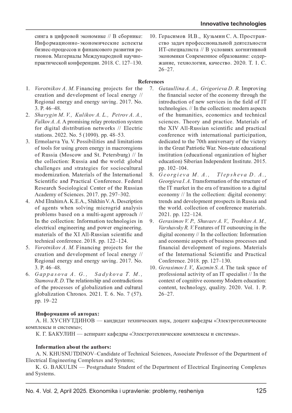 5. Воротников А. М. Финансирование проектов создания и развития локальной энергетики // Региональная энергетика и энергосбережение. 2017. № 3. С. 46-48. EDN: UWZEXA