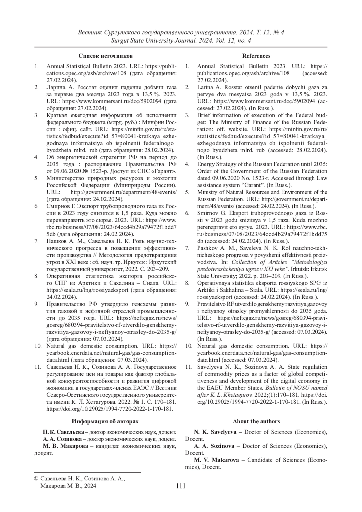 6. Смирнов Г. Экспорт трубопроводного газа из России в 2023 году снизится в 1,5 раза. Куда можно перенаправить это сырье. 2023. URL: https://www.rbc.ru/business/07/08/2023/64ccd4b29a79472f1bdd75db (дата обращения: 24.02.2024).